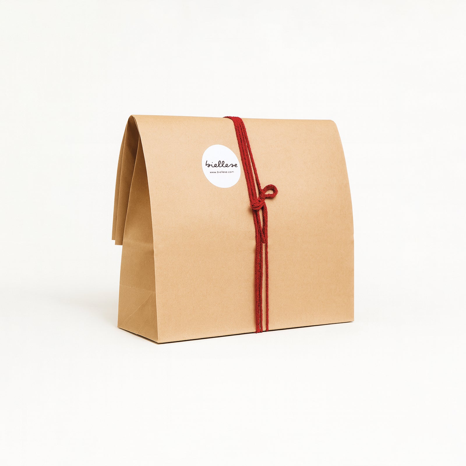 The red Patagonia thread chosen for the closure adds a refined touch of color and guarantees a perfect seal when combined with the Biellese parcel seal sticker.